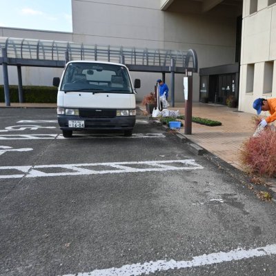 菊池農業高校生が文化会館の花壇の植え替えを行いました。