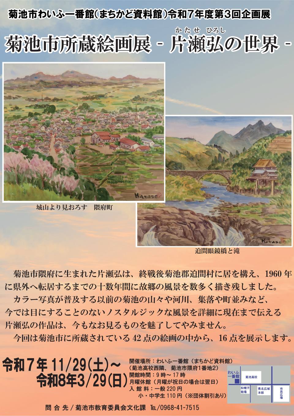 ホーム > 生活情報 > 健康・医療・戸籍・年金 > 健康・医療 > 新型コロナウイルス感染症 > 市民の皆様へ > 各種行事・イベント情報 各種行事・イベント情報 1 2026年01月15日 まちかど資料館企画展「菊池市所蔵絵画展〈片瀬弘の世界〉」について 2025年06月03日 文化財と一緒に撮影して、古代の森カードを手に入れよう! 2024年11月29日 RKKまつりに「RE:WEARプロジェクト(こども服無料配布)」... 2022年11月15日 確定申告における電子申告(e-Tax)利用のお願い 2022年10月01日 第17回菊池こころのネットワークフェアが開催されます。 1