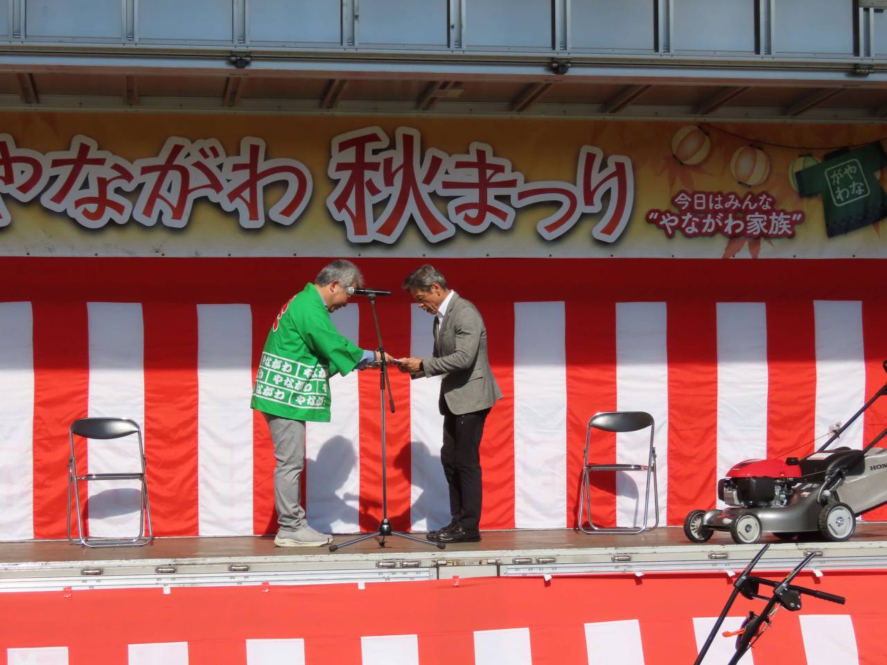 九州柳河精機株式会社が刈払機・芝刈機を寄贈(令和7年11月8日)