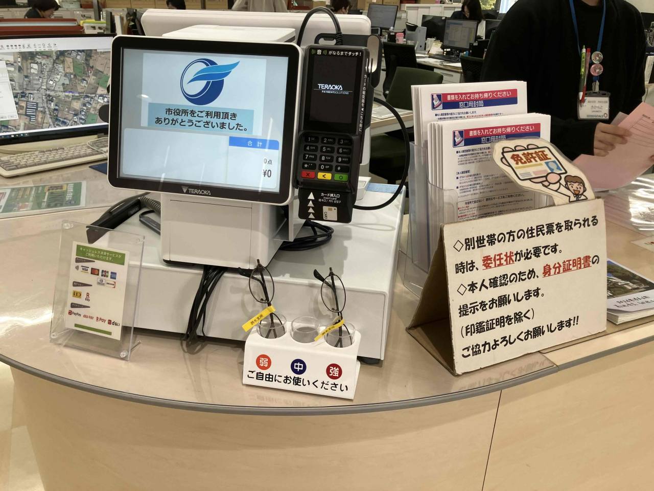 菊池市では、令和7年11月より本庁市民課及び各支所市民生活課窓口において、各種証明書の支払い方法について、キャッシュレス決済レジを導入しました。これまでは、現金及びPayPayのみの取扱でしたが、市民の利便性の向上とDX推進の一環として、現金を取り出さずに、多様なキャッシュレス決済を行うことが可能となりましたので、ぜひご利用ください。