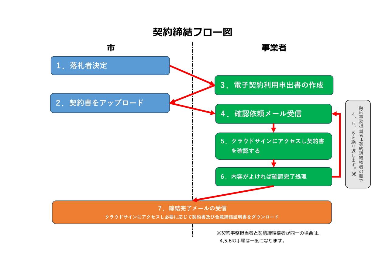 本市では、弁護士ドットコム株式会社が提供する電子契約サービス「クラウドサイン」を導入し、契約の締結を電子化しています。