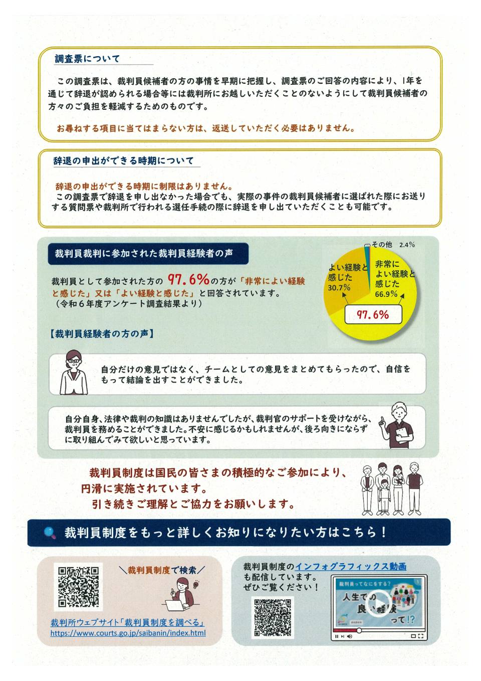 ホーム > 菊池市の概要 > 各種相談 > その他の相談 裁判員制度について 2025年10月15日 熊本地方裁判所より、裁判員制度についてお知らせいたします。詳細は、下記リンクをご覧ください。裁判員制度(PDF 約6MB) お問合せ先熊本地方裁判所本庁096-325-2121(代表)〒860-8513熊本市中央区京町1丁目13番11号熊本地方裁判所のホームページ