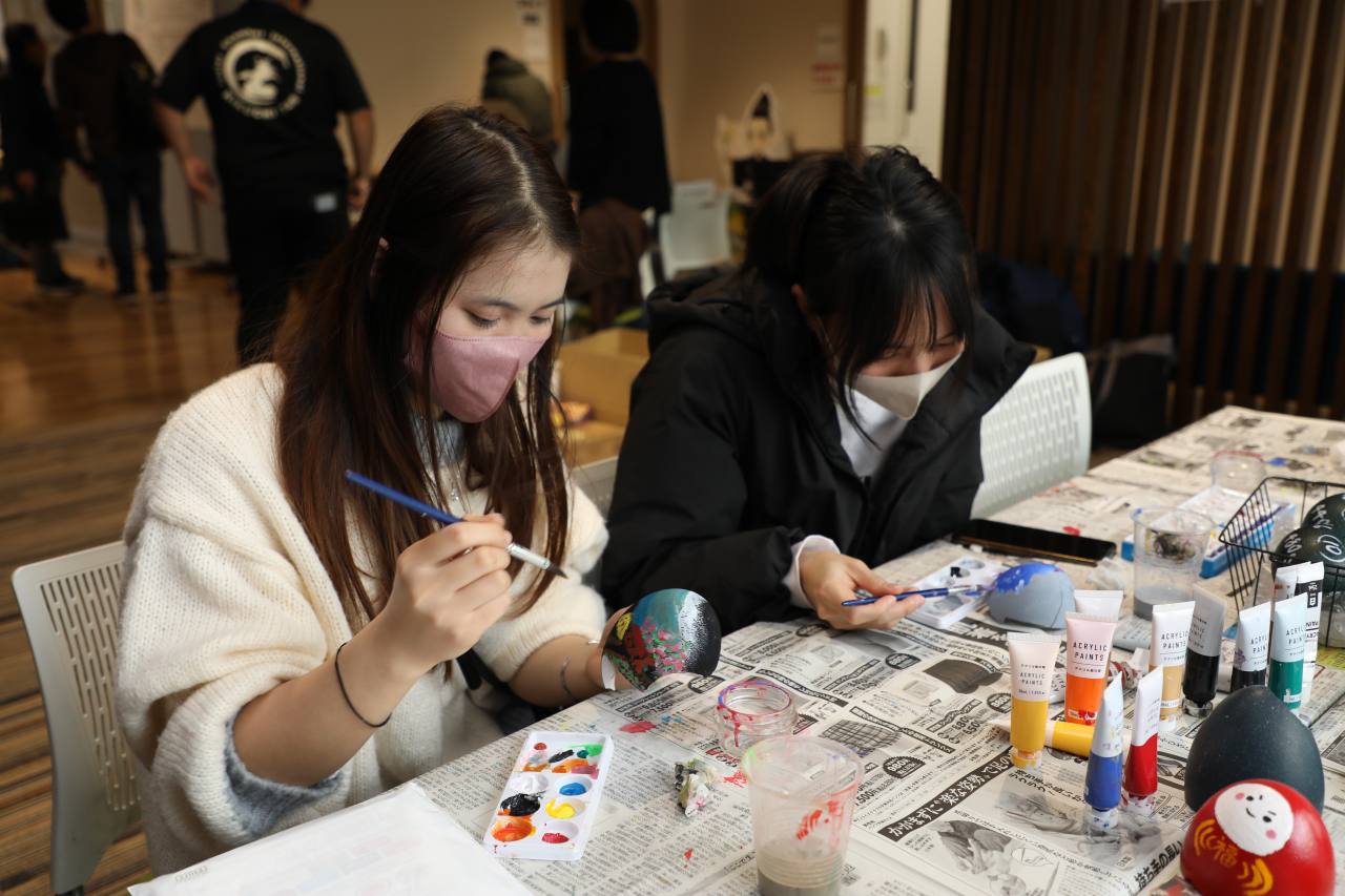 エミューの卵に、思い思いの絵を描くアート体験。頑丈な殻を活かした作品作りを通じて、菊池のユニークな観光資源に触れ、地域の魅力を再発見することができました。