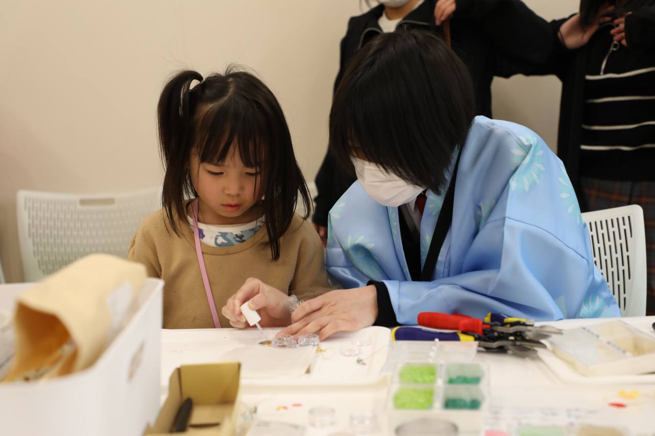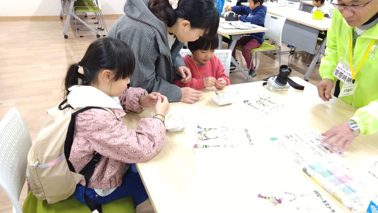 紫外線で色が変わる不思議なビーズを使った、自分だけのストラップ作り。楽しみながら紫外線について学び、身近な現象から地球環境の変化を考える、化学的な視点を育む体験となりました。