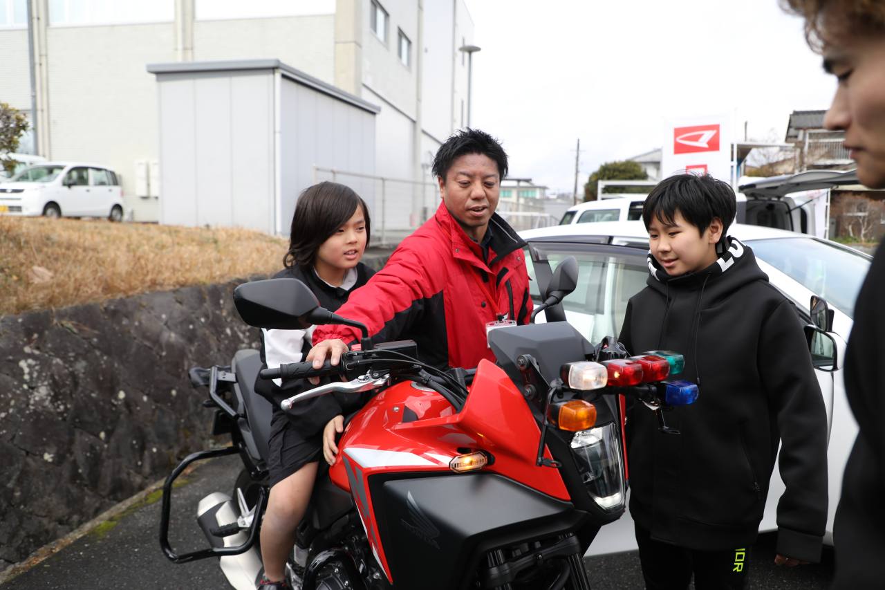 クイズを通して、日頃の交通ルールを楽しく再確認しました。屋外では足を使わず手で運転操作ができる福祉車両の教習車や、教習バイクを展示。珍しい車の仕組みに触れ、すべての人に移動の自由をもたらす工夫と交通安全の大切さを実感しました。