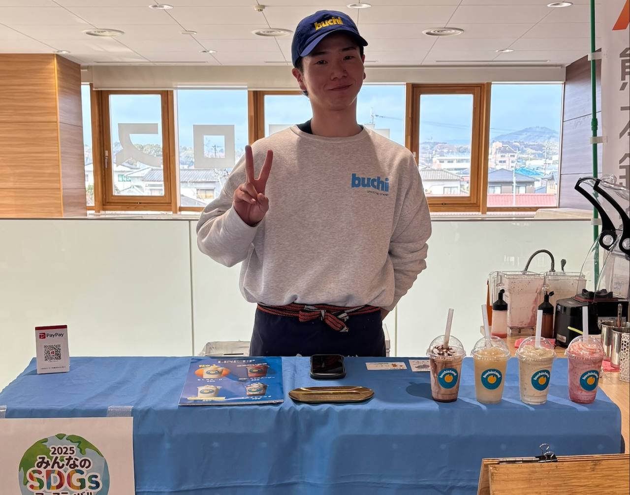 廃棄予定だった菊池市産の果物を活用したスムージーを販売。一番人気の菊池産苺スムージーをはじめ、果物の甘みがギュッと詰まった一杯に多くの人が笑顔になり、食品ロス削減の輪が広がりました。