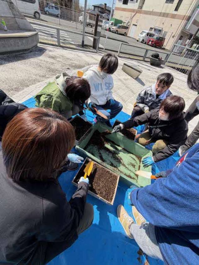 菊池市グリーン市民に登録されている菊愛会の皆さまにご協力いただき、横町ポケットパークと切明ポケットパークに花壇を設置し、様々な花苗の植栽を行いました。