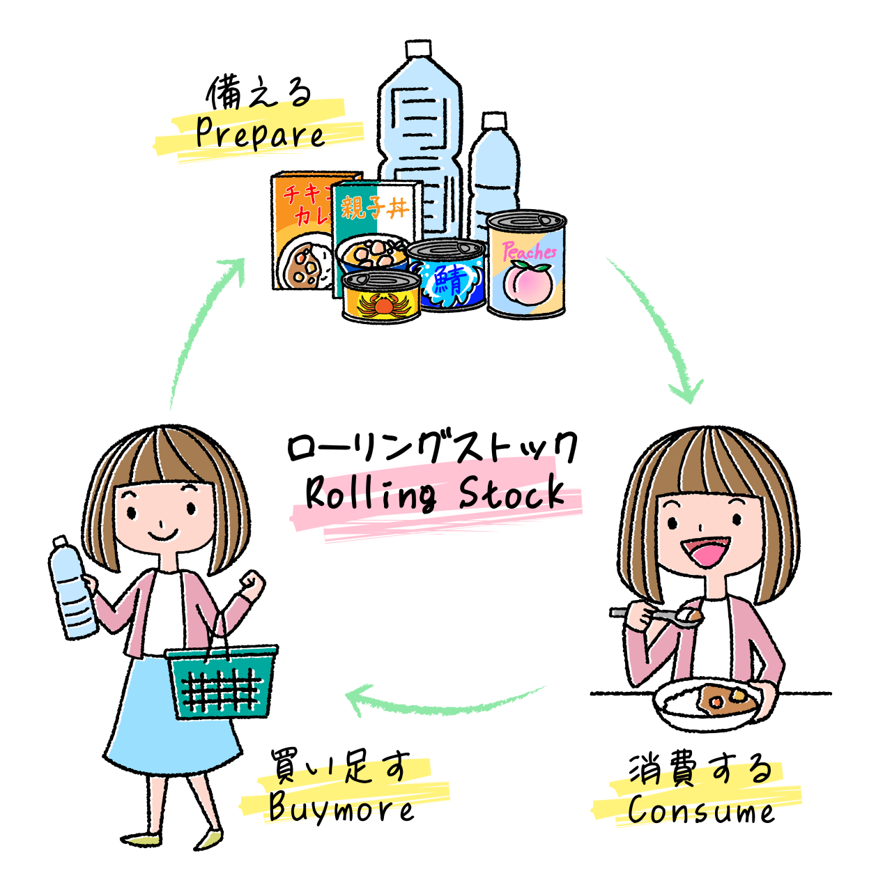 栄養士の講話【災害時に困らないためには?】では、家庭での「ローリングストック」や備蓄食品の活用法について学びました。災害時には物流の停止で1週間以上食料が届かない場合もあるため、普段から少し多めに食品を備え、古いものから使う「回転備蓄」が重要です。