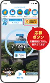 応募期間になると、500pt以上獲得した方のホーム画面右上に応募ボタンが表示されます。