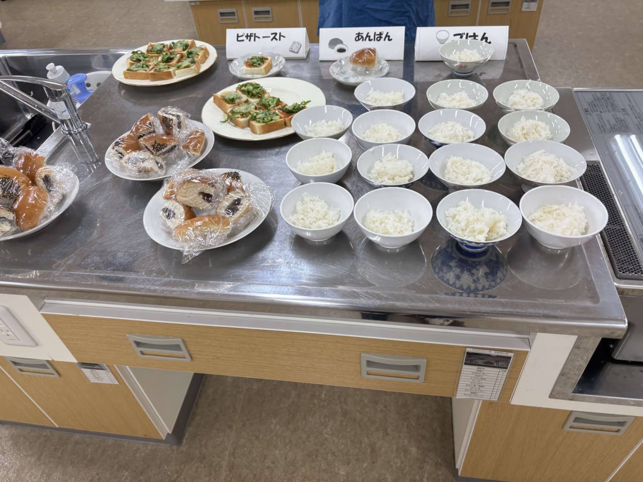 80kcalバイキングでは、ご飯やパン、調理した料理や調味料の80kcalはどのくらいの量かを目で確認しながらバイキングを行いました。