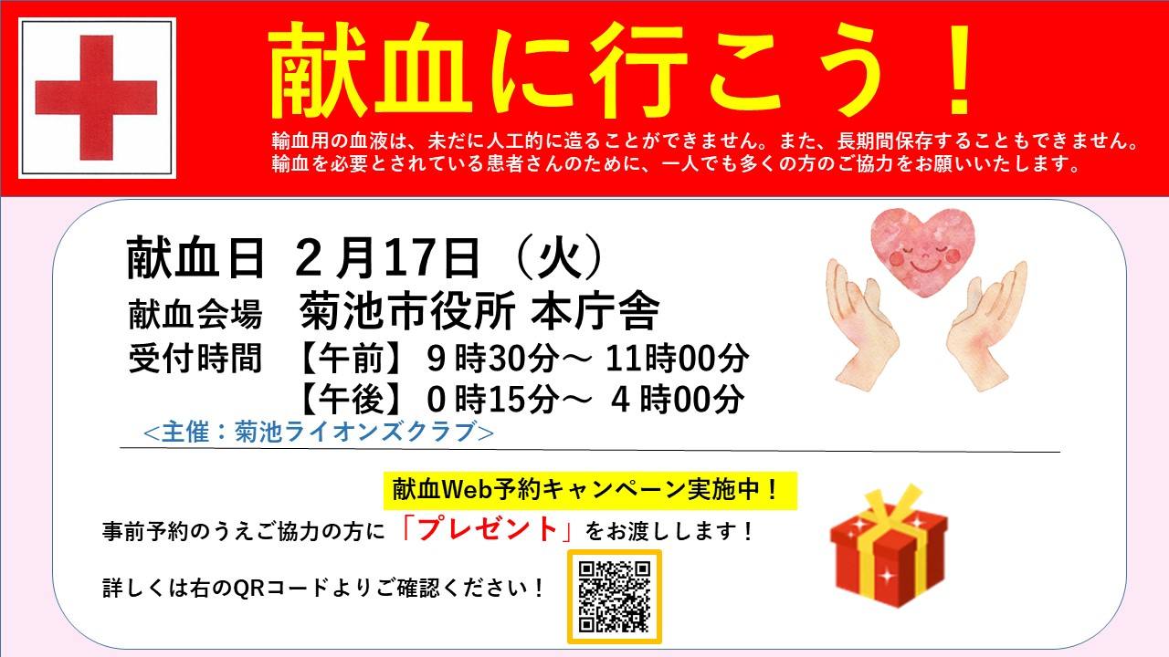 2月の献血のお知らせ ※熊本健康アプリのポイント対象