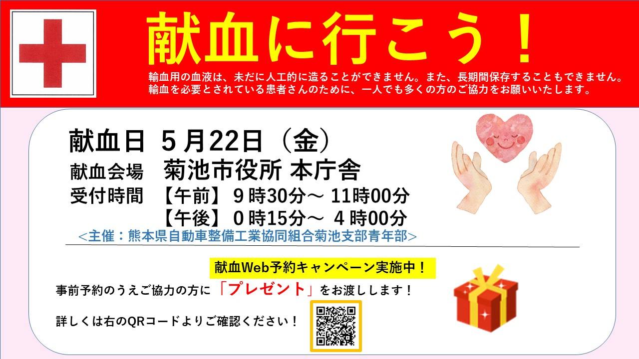 5月の献血のお知らせ ※熊本健康アプリのポイント対象