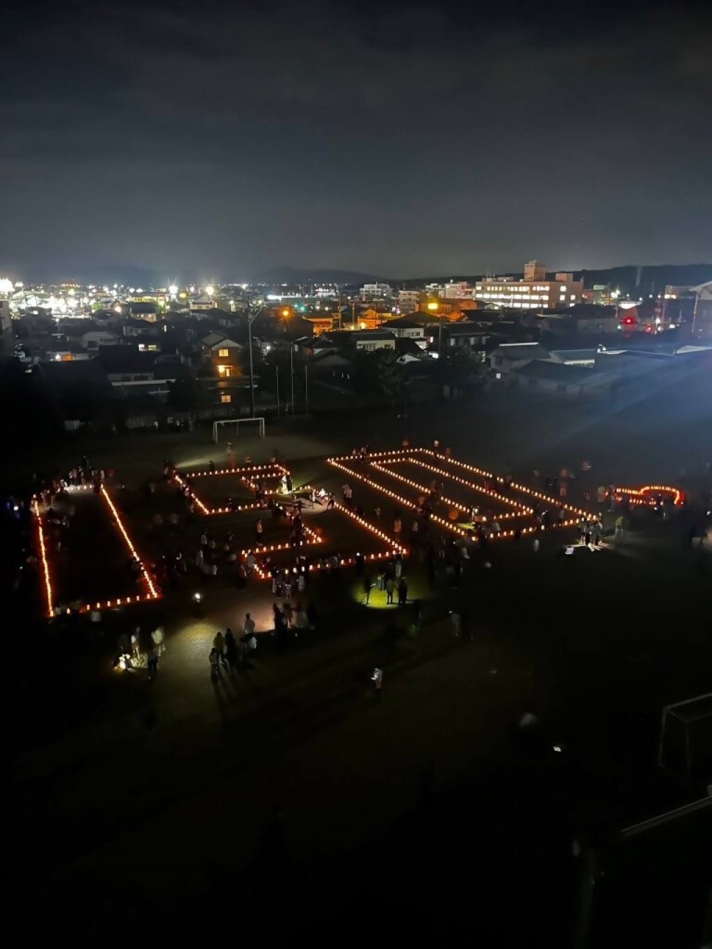 作品説明:隈府小学校にて、150周年式典が盛大に催されました。その時に、子供達ひとりひとりが、様々な願いや思いをこめて作成した灯籠に灯りをともした時の様子です。これから先に繋げていく菊池市の、未来の子供達へ。