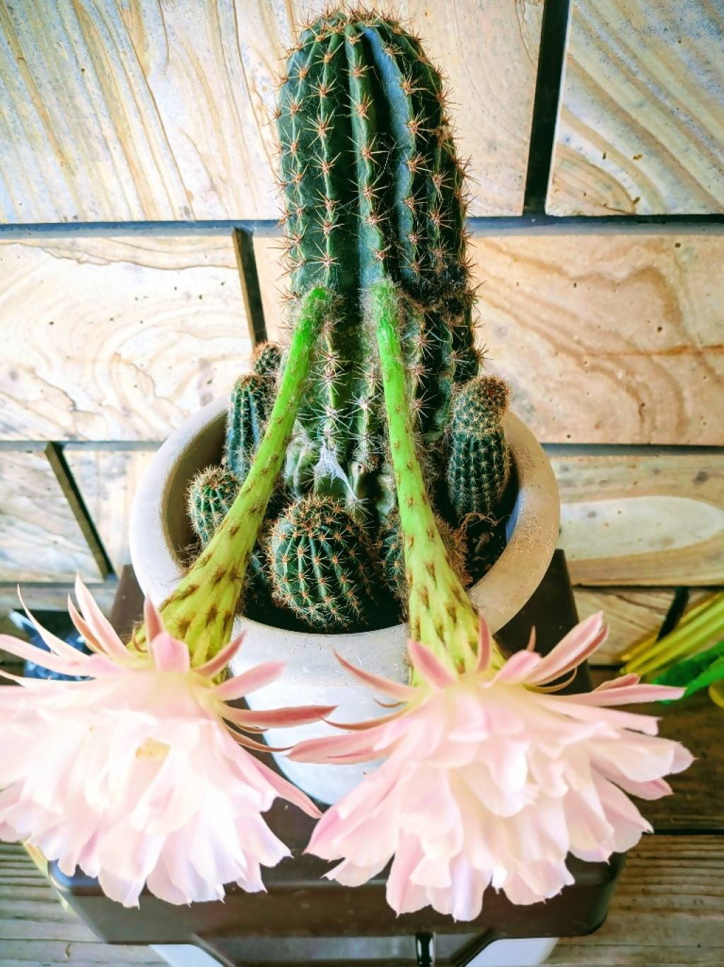 作品説明:前後80年の節目の年、平和を祈るように8月15日の朝にサボテンが美しい花を咲かせました。1年にたった一度だけ咲くこのサボテンの花は明日にはしおれてしまいます。今日という日を選んで咲いてくれたサボテンの花の前で静かに黙祷をささげました。
