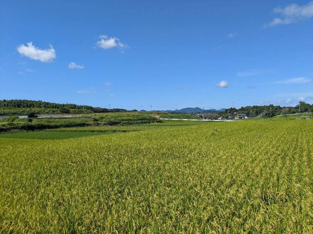 作品説明:天気良し、眺め良し、そして実り良し、期待が膨らむ収穫前。昔から同じ風景が見事に繰り返されている。