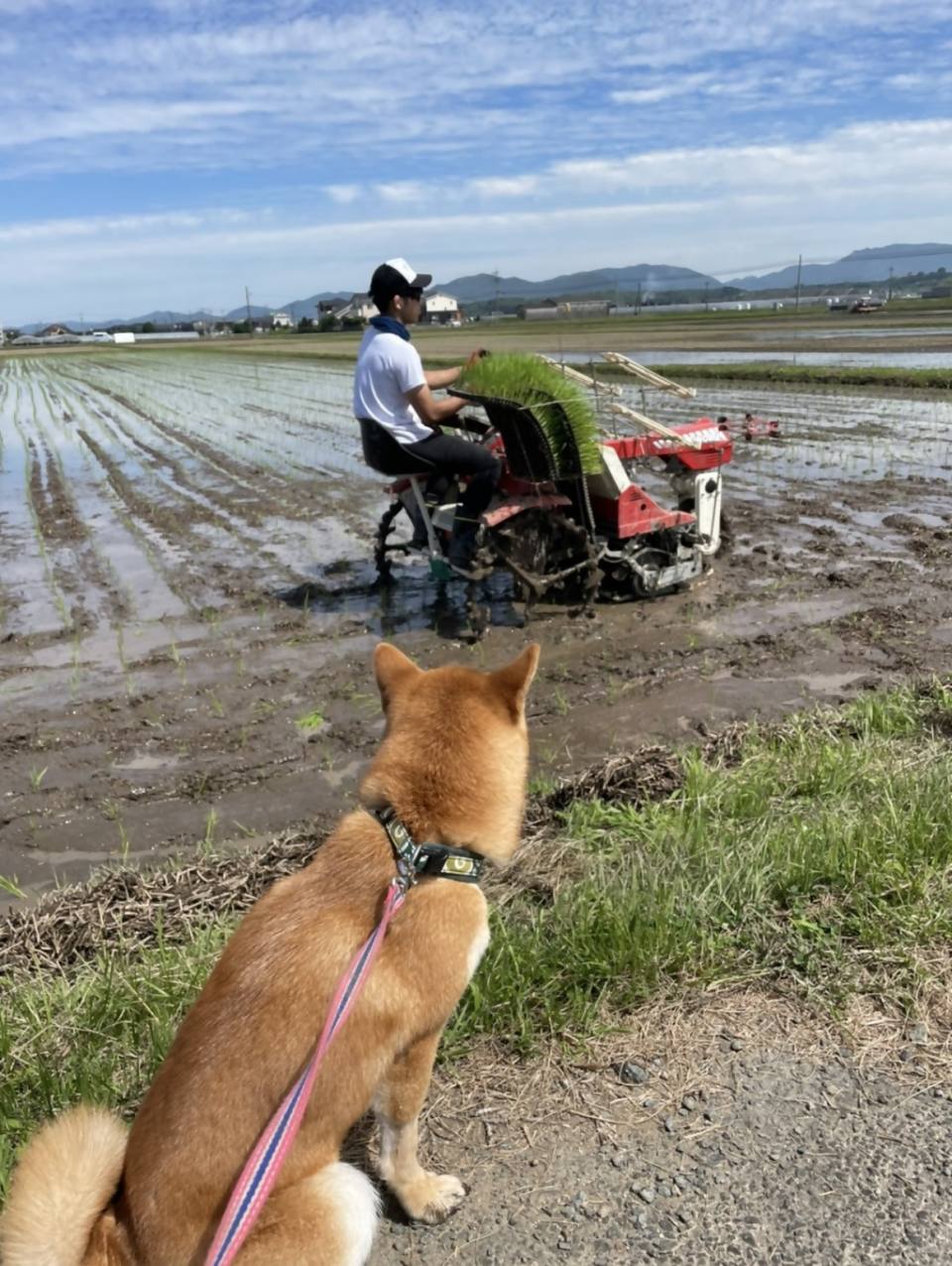 みんなで協力して、みんなでご飯を食べる我が家の年中行事です。今年は、ワンコも応援にかけつけました。無事、収穫できますように!
