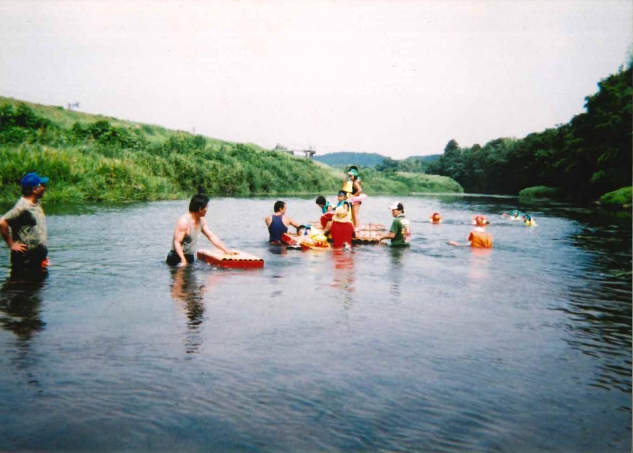 作品説明:菊池川に接する広瀬区。小さい時から、川で泳ぎ、魚とりをして遊んだ少年時代。子供達に川に親しんでもらいたいと、「川祭り」を区行事に提案。夏休みに向けて、イカダ作りに励んだ。約束の日、子供、区民がたくさん集まってくれた。