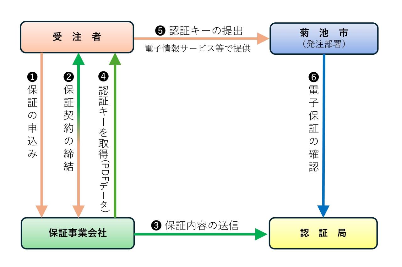 - 受注者は、保証契約番号と認証キーを菊池市(発注部署)へ提出する。