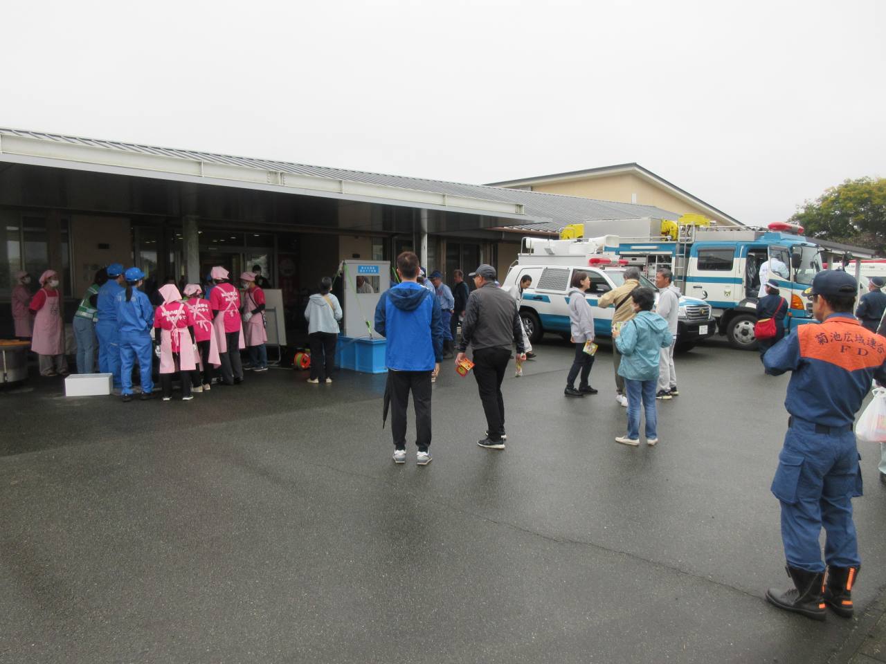 ホーム > 防災・安全情報 > 防災情報 > 各種お知らせ 菊池市総合防災訓練を開催しました 2025年11月18日 11月9日(日)に菊池市総合防災訓練を開催しました。 関係機関及び市民が一体となり訓練を実施することで、防災意識の普及・高揚を図り、「災害に強いまちづくり」を推進することを目的として、毎年11月に開催しています。本年度は泗水孔子公園及び泗水公民館を会場に行いました。 当日は、朝から雨天となり、一部内容を変更して実施しましたが、参加者は各種訓練や展示等を体験し、防災への知識を深めていました。