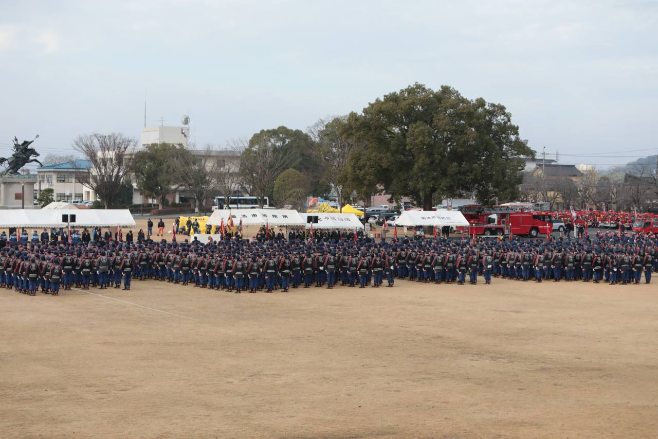 1月18日(日)「令和8年 菊池市消防団出初式」が行われました。昨年から引き続き会場を菊池市ふるさと創生市民広場にて、川口団長以下1,060人の団員が参加し、日頃の訓練の成果を披露しました。