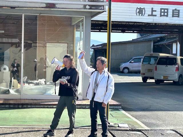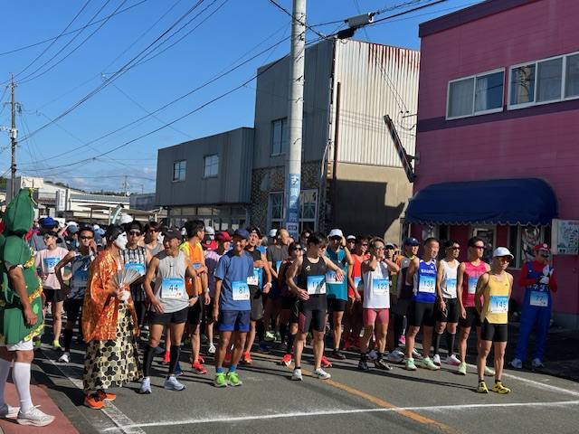 江頭市長は挨拶で「今回も2㎞、5㎞、10㎞と3つのコースを用意させていただきましたが、約400名とたくさんの方々にご参加いただき誠にありがとうございました。そのうちこれから10㎞、172名の方々のスタートとなります。それぞれ皆さんなりの楽しみを持って走っていただきたいと思いますので、是非頑張って下さい。」と述べました。