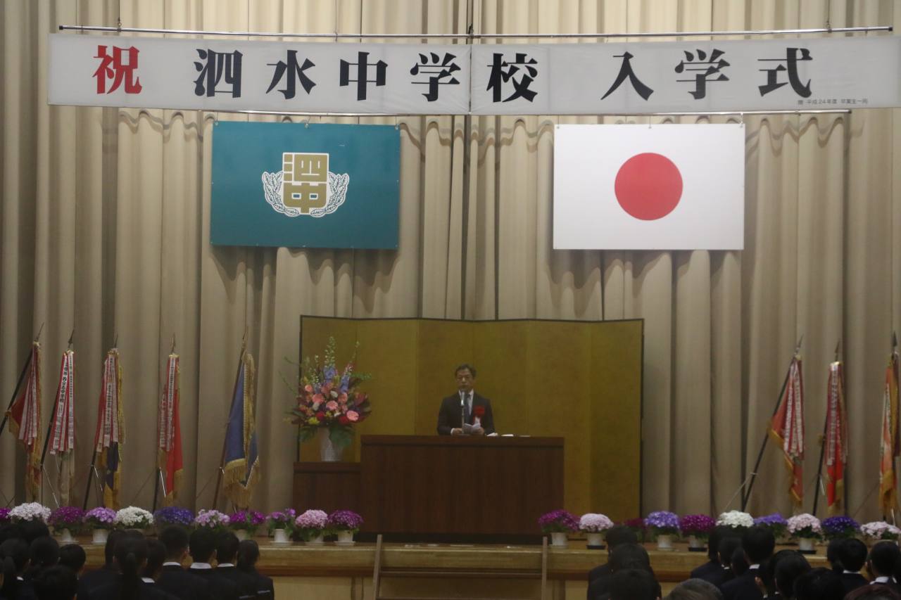江頭市長は来賓挨拶で、「中学校は、小学校と違い教科ごとに先生が変わります。部活動も始まります。そして、他の小学校から入学してきた新入生との新たな出会いもあります。新しい環境での勉強や部活動では、楽しいことや嬉しいことが多くある一方で、これまでにない課題に直面し、戸惑いや不安を抱えることもあるかもしれません。しかし、その課題を乗り越える時こそ、成長できるチャンスでもあり、夢や高い目標は、困難を乗り越える大きな原動力となります。どうか、たくさんの夢や、将来への目標を持ち、目の前の課題から逃げることなく、何事にも積極的に挑戦してください。」と述べました。