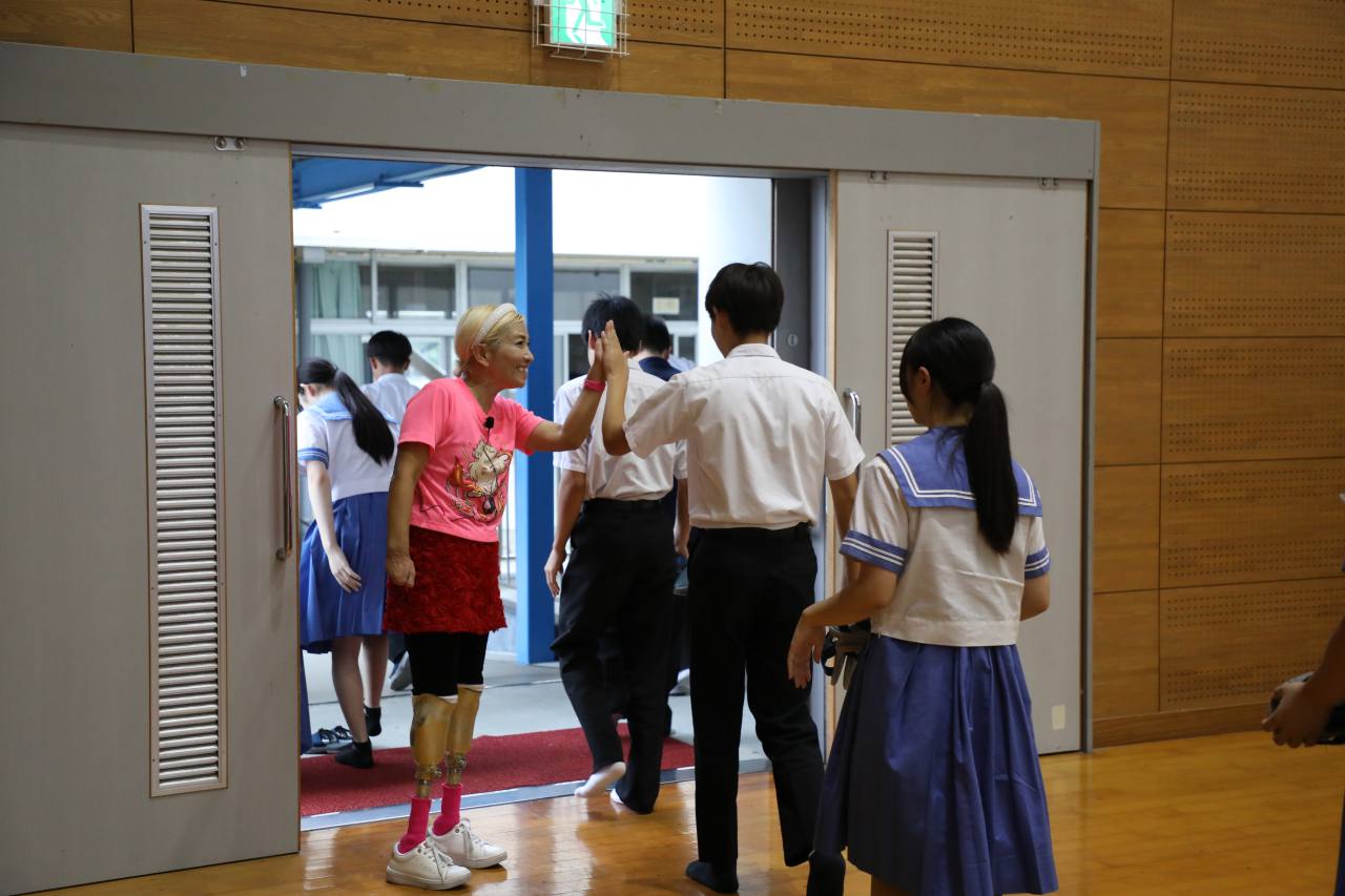 10月3日(金)に七城中学校で、義足ランナー・横田久世さんによる教育講演会「挑戦~可能性は無限大~」が行われました。