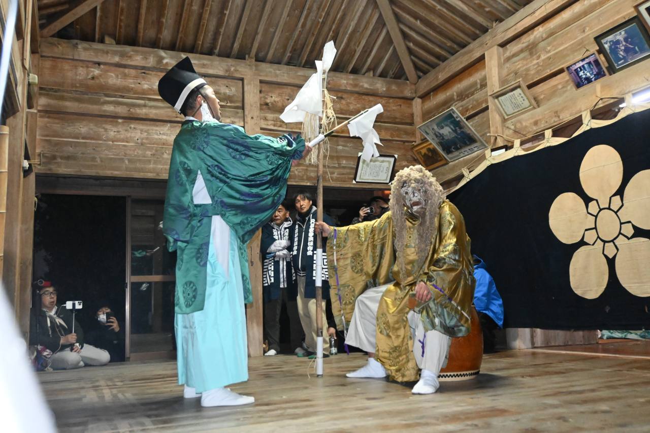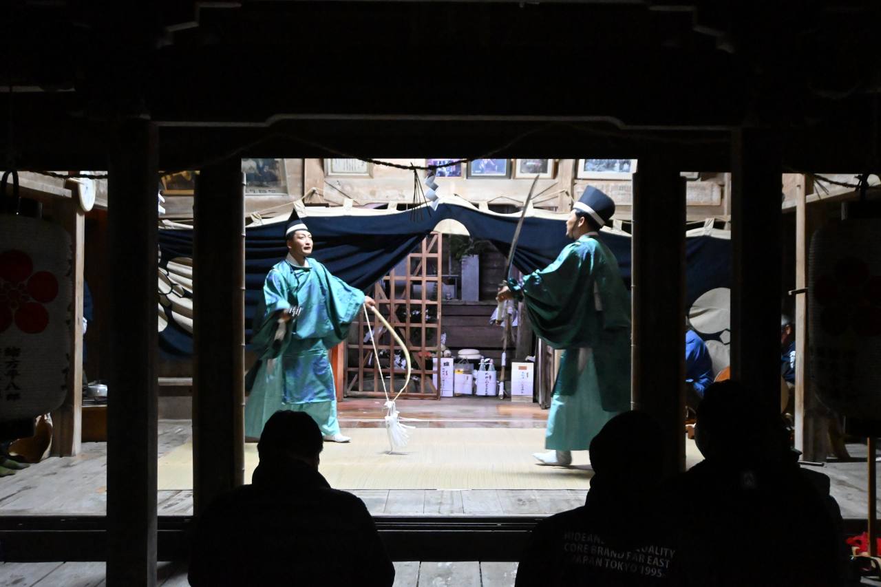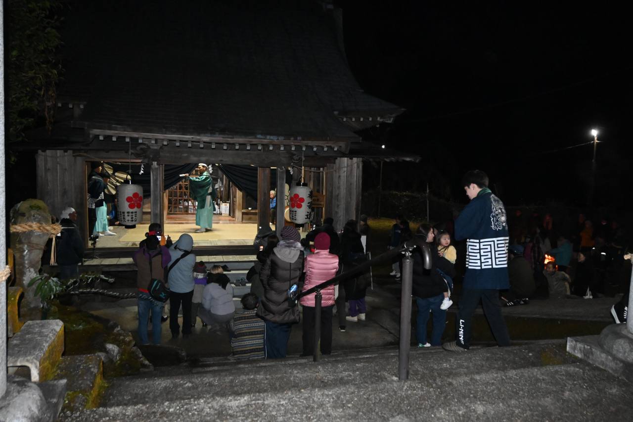 当日は例年より冷え込みが緩やかで風もほとんど吹かず、地元の方々に加えて県内外からたくさんの観客が訪れ、神楽を楽しまれていました。