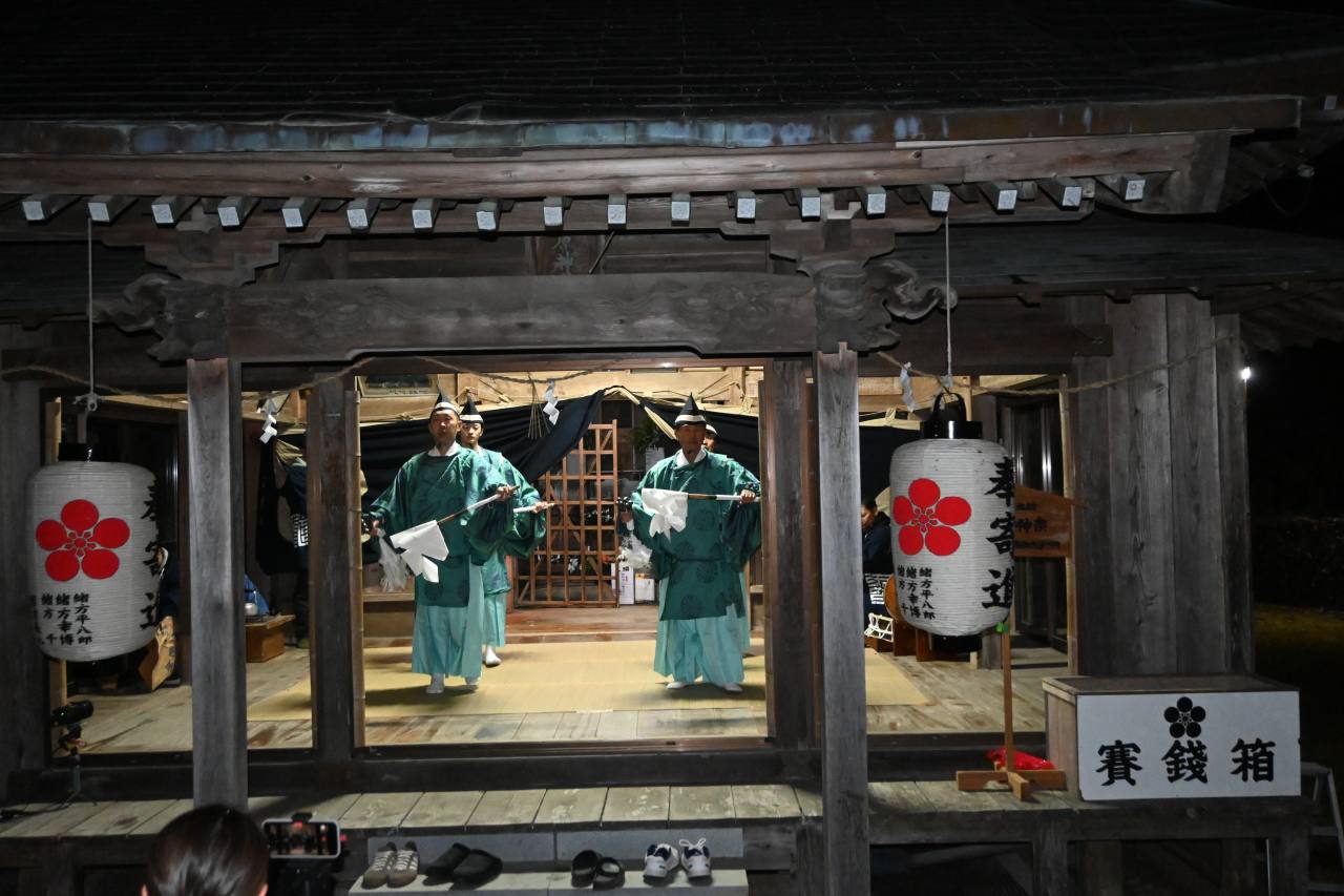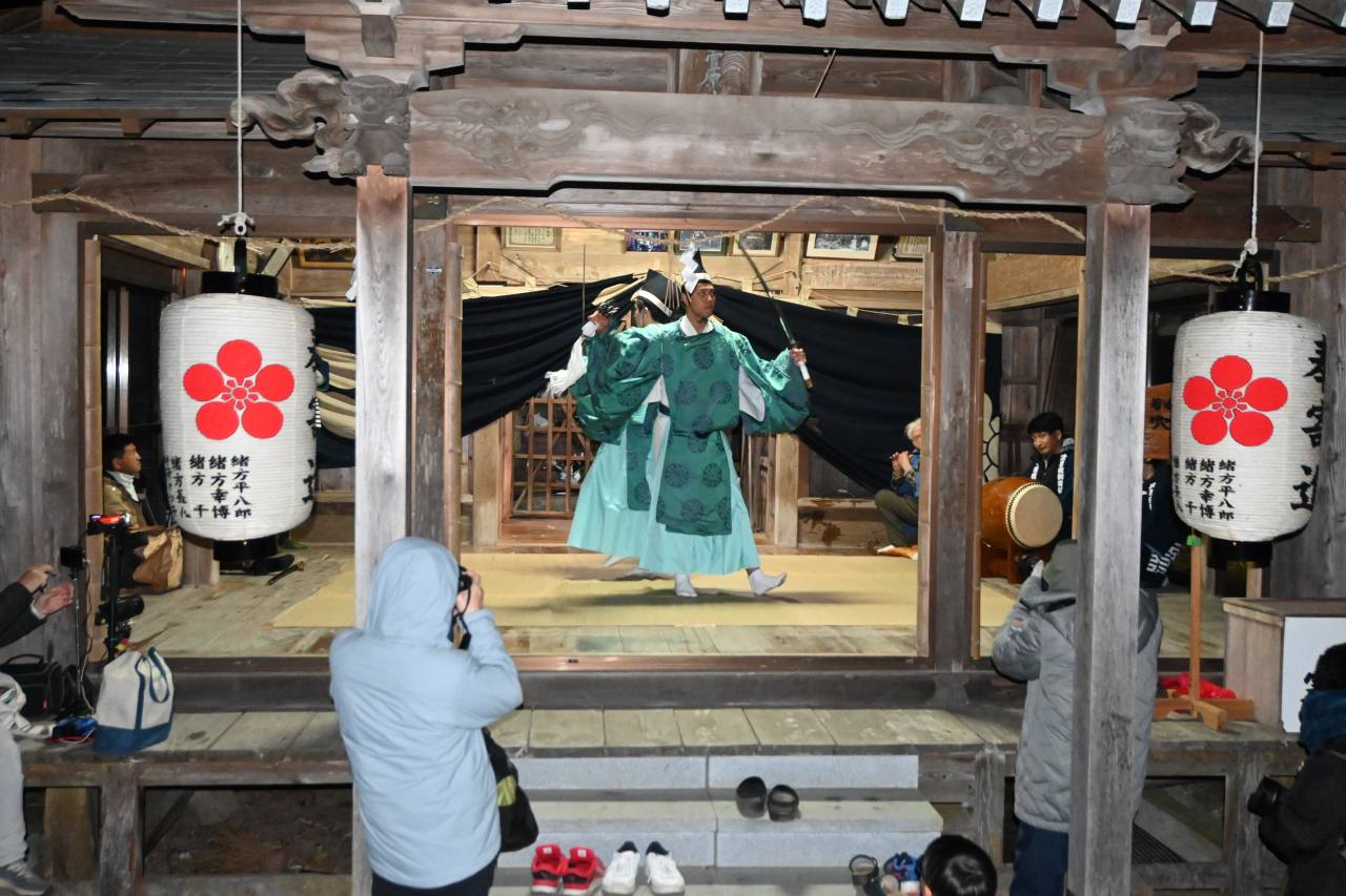 令和8年1月5日(月)に、菊池市班蛇口の穴川地区に所在する菅原神社にて、市指定無形民俗文化財「穴川夜神楽」が奉納されました。