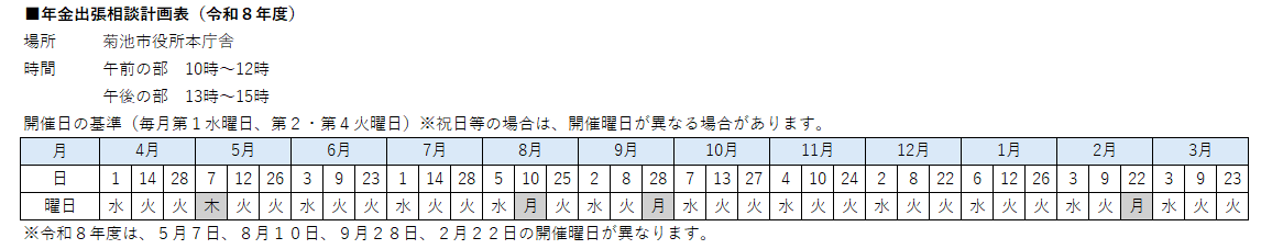 ホーム > 生活情報 生活情報 まちづくり このカテゴリー一覧を見る 2026年02月03日 令和7年度第2回寄せ植えワークショップを開催しました(R8.1.24) 2026年01月30日 菊池都市計画区域マスタープラン改定の公聴会について 2026年01月26日 「菊池市都市計画マスタープラン(案)」に対するパブ... 2026年01月26日 菊池市の都市計画 2026年01月23日 シン・農泊推進塾が開催されました! 2026年01月23日 地籍調査作業規程準則第30条第4項の規定による筆界案の作成公告について 健康・医療・戸籍・年金 このカテゴリー一覧を見る 2026年02月06日 年金出張相談のご案内(令和8年度) 2026年02月06日 菊池市国民健康保険事業の運営に関する協議会 2026年02月06日 年金は人生の節目ごとに届け出が必要です 2026年02月06日 菊池市国民健康保険事業の運営に関する協議会 2026年01月28日 コンビニでの証明書交付サービスを一時停止します 2026年01月28日 コンビニでの証明書交付サービスを一時停止します 妊娠・出産・子育て このカテゴリー一覧を見る 2026年02月01日 歯ッピーキッズ(R7.12月分) 2026年01月27日 令和7年度菊池市物価高対応子育て応援手当 2026年01月22日 熊本県子ども・若者総合相談センター/熊本県ヤングケア... 2026年01月22日 熊本県子ども・若者総合相談センター/熊本県ヤングケア... 2026年01月22日 花房保育園 沿革と概要 2026年01月20日 放課後児童育成クラブ 障がい・福祉・高齢者・介護保険 このカテゴリー一覧を見る 2026年02月01日 第38回くまもとねんりんピック2026参加者募集のお知らせ 2026年02月01日 介護予防ミニ講座 2026年02月01日 介護予防ミニ講座 2026年01月29日 認知症介護家族のつどい 2026年01月28日 もの忘れ相談会 2026年01月20日 難病患者家族会「菊池にじの会」へ参加してみませんか? くらし・上下水道・生活環境 このカテゴリー一覧を見る 2026年01月23日 浄化槽設置を予定されている皆さんへ 2026年01月15日 TSMC進出を契機とした菊池市の地域開発促進 ~宅地・商... 2026年01月08日 狂犬病予防注射済票の交付期間に関して 2025年12月25日 水道管の凍結にご注意ください 2025年12月24日 菊池管内環境活動協議会が「くまもとSDGsアワード2025」を受賞しました 2025年12月23日 阿蘇地域太陽光抑制エリア図について ごみ・リサイクル このカテゴリー一覧を見る 2025年12月26日 一般廃棄物処理業等許可(更新)申請書類(様式) 2025年12月10日 年末年始の環境工場の開放日程について 2025年11月28日 ごみの適正な分別徹底のお願いについて 2025年11月28日 年末年始のごみ収集とし尿くみ取りについて 2025年11月13日 令和7年度 菊池川水質事故対策訓練 2025年11月01日 菊池市 家庭ごみの分け方・出し方 市税 このカテゴリー一覧を見る 2026年02月01日 確定申告に関するお知らせ 2026年02月01日 軽自動車の廃車・変更・移転手続きはおすみですか? 2026年01月28日 コンビニでの証明書交付サービスを一時停止します 2026年01月28日 コンビニでの証明書交付サービスを一時停止します 2026年01月28日 コンビニでの証明書交付サービスを一時停止します 2026年01月28日 コンビニでの証明書交付サービスを一時停止します 商工農林畜産業 このカテゴリー一覧を見る 2026年02月01日 牛・豚・馬・山羊・いのしし・鶏等の飼養者は、種類や... 2026年01月30日 【要望調査】コメ新市場開拓等促進事業について 2026年01月28日 【要望調査】畑作物産地形成促進事業について 2026年01月28日 【要望調査】畑地化促進事業について 2026年01月27日 菊池農業振興地域整備計画の変更の縦覧について 2026年01月26日 くらし応援!菊池市内共通商品券(めぐるん券)を配布します 教育・生涯学習 このカテゴリー一覧を見る 2026年01月13日 菊池市文化会館閉館に関する説明会を開催します 2025年12月17日 令和9年3月31日に菊池市文化会館を閉館します 2024年12月16日 菊池市文化会館大ホールを閉鎖します 2026年02月06日 2025年度学校給食献立表・食育だより 2026年02月05日 菊池川流域高校生サミット 2026年02月04日 菊池市立中学校の拠点校部活動について 外国人生活情報 このカテゴリー一覧を見る 2025年08月28日 外国人生活支援等のサイトを紹介します 2025年05月09日 外国人の方の相談を受け付けています