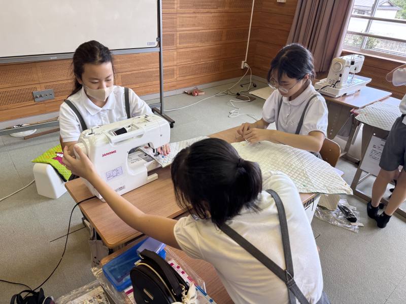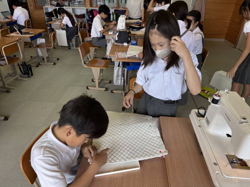 6年生は家庭科の学習で「ナップザック」の制作を行っています。