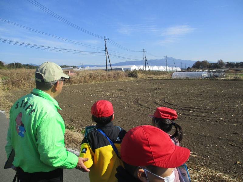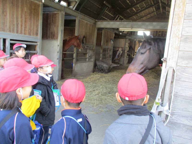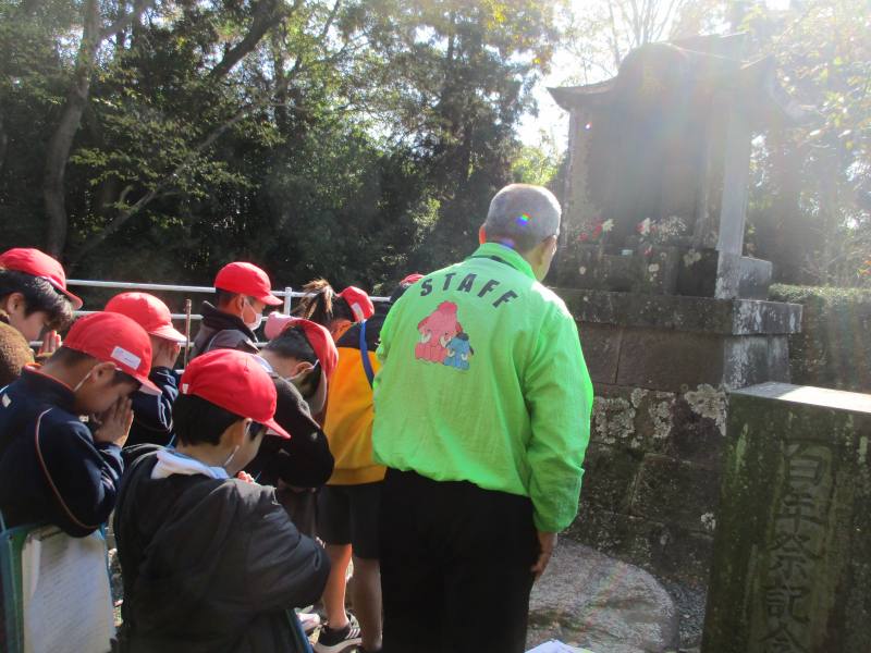 12月10日(水)の2・3・4時間目に生活科の学習「もっとなかよしたんけんたい」で花房台へ出かけました。恭栄堂さんでインタビューをしたり、菊池農業高校の周辺を歩き牛や馬を見たり、馬頭観音さんの説明など、お話を聞いたりしました。朝は少し寒かったのですが、いいお天気の日にたくさん歩き、身も心もぽかぽかになりました。