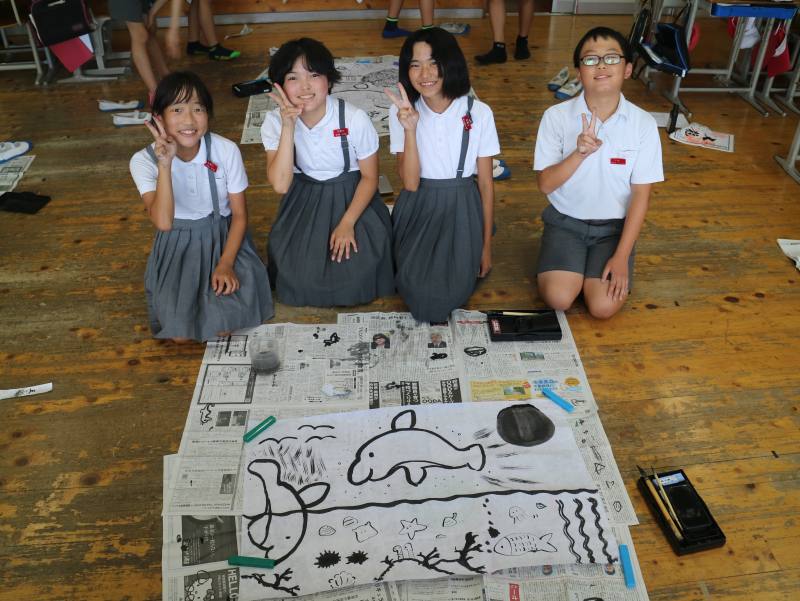 グループでの共同制作でしたが、「ここに○○を描こう」や「水増やしたらどう?」などアイデアを出し合いながら、協力し、楽しそうに作品を仕上げていました。とても良い雰囲気の時間でした。