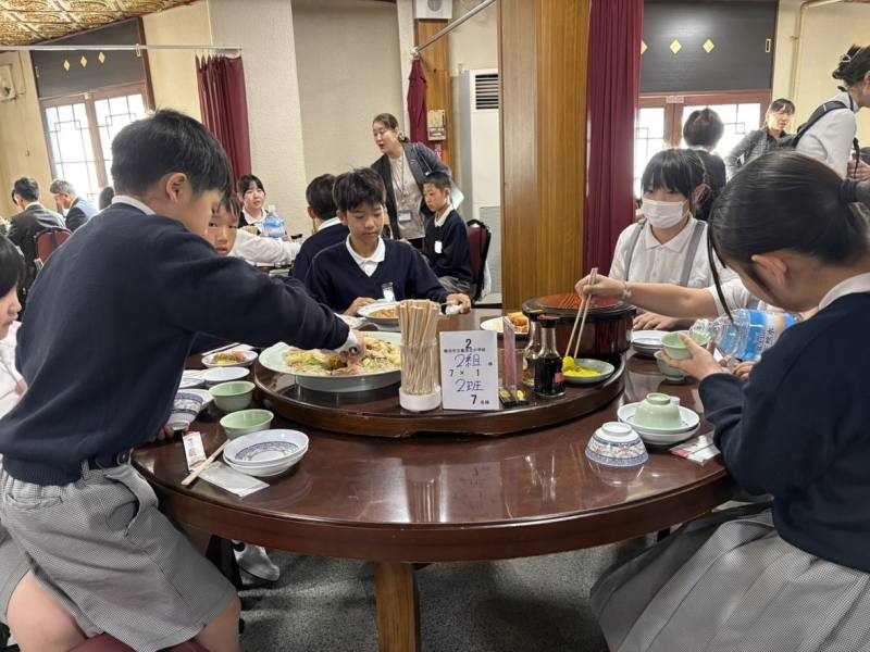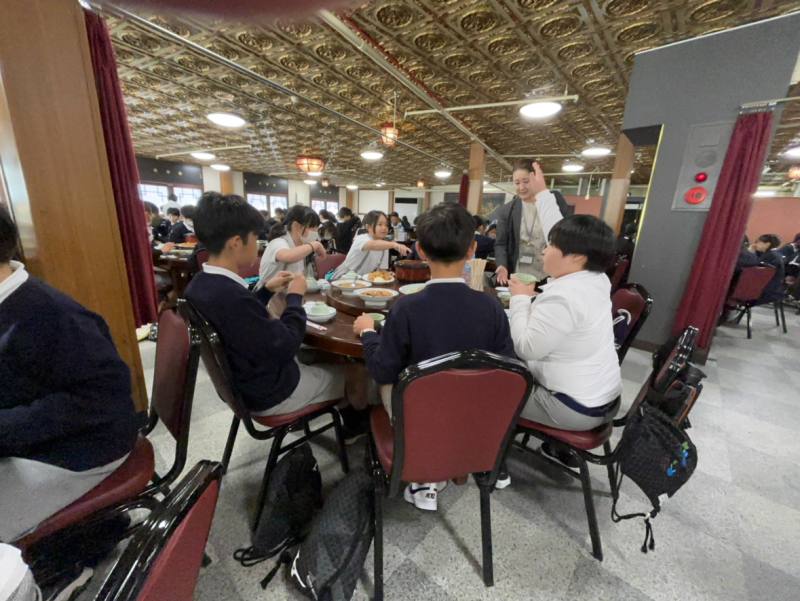 修学旅行1日目、フェリーの中・昼食の様子です。