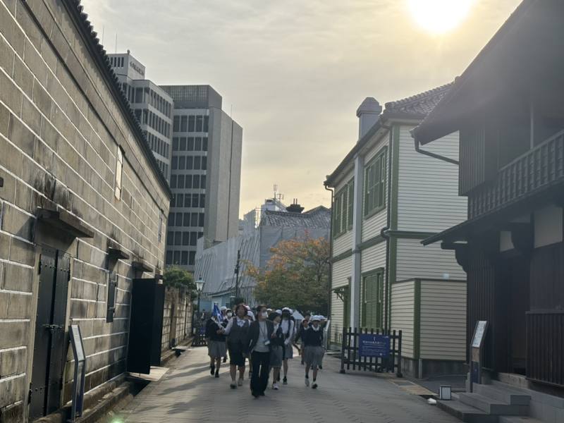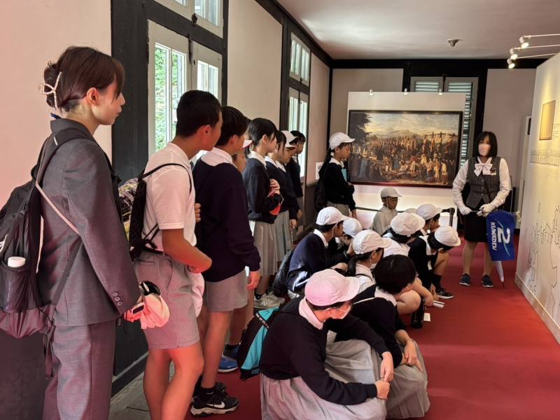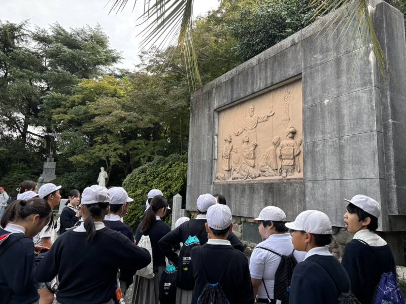 修学旅行2日目の午前中は長崎市内の史跡を巡りました。お土産の購入も終わり、昼食会場に入りました。
