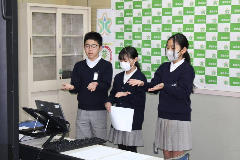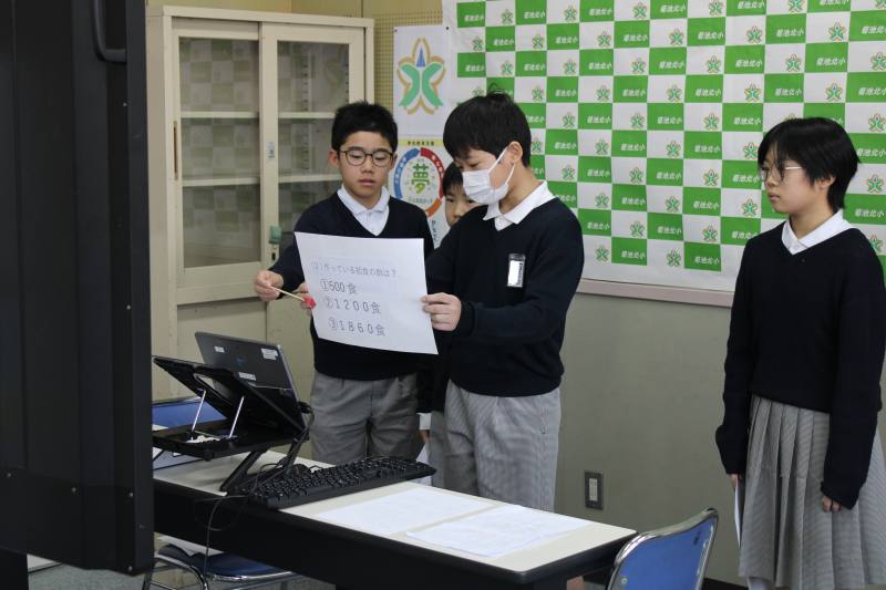 毎日に食べている給食。この給食が始まった日(1月24日)を給食記念日としています。菊池北小では1月19日の週を「給食週間」として、給食に感謝する気持ちを高めようという取り組みを進めていきます。今日の児童朝会はそれに向けて、給食委員会から発表がありました。給食が始まった歴史や北小給食ランキングをクイズ形式で紹介してくれました。これからも給食に感謝して過ごしたいです!