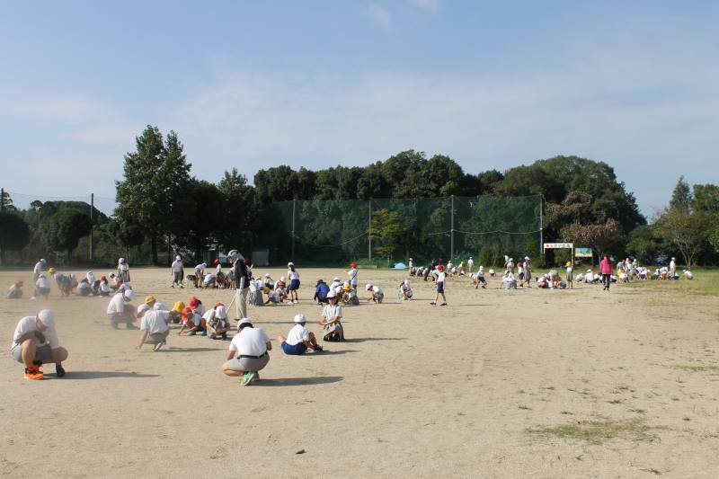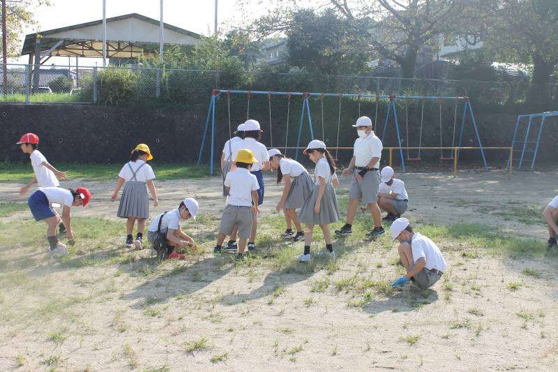 今日は朝から縦割り班活動を行いました。夏休み前の前回は計画でしたが、今回は環境美化委員会の企画で、縦割り班ごとに運動場の草取りをすることになりました。「全員でするとこんなにもとれるんだ!」と驚くぐらいの草をとることができました。暑い中でしたが、頑張ってくれてありがとう!おかげで、運動場がきれいになりました!