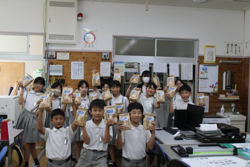先日、5年生で稲刈りを行いました。そのお米が精米されて学校に届きました!新米が来た時のこのドキドキ感は何ともいえないですね!小さいころ、「今日のご飯は新米だけんね!」と祖母から言われて大喜びしていたことを今でも思い出します。お米を手にした5年生のみんなが職員室に知らせに来てくれました。ぜひ、お家のみんなで新米の喜びを味わってください!