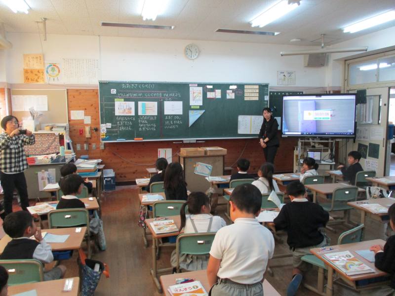 今日は1年生の研究授業の日です。どちらが長いか、その調べ方の学習です。調べたいものの端を重ねることでどちらが長いかを調べることができます。一人で考えたり、グループで考えたりと、しっかり集中して学習していました。最後の問いは「ハンカチのたてと横はどちらが長いか調べる方法を考えよう」でした。意見を出し合いながら、解決方法を導き出した1年生はスゴイと思いました!