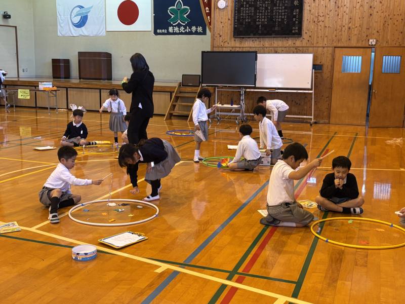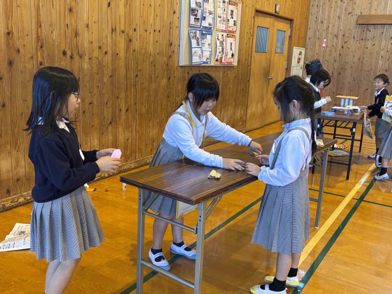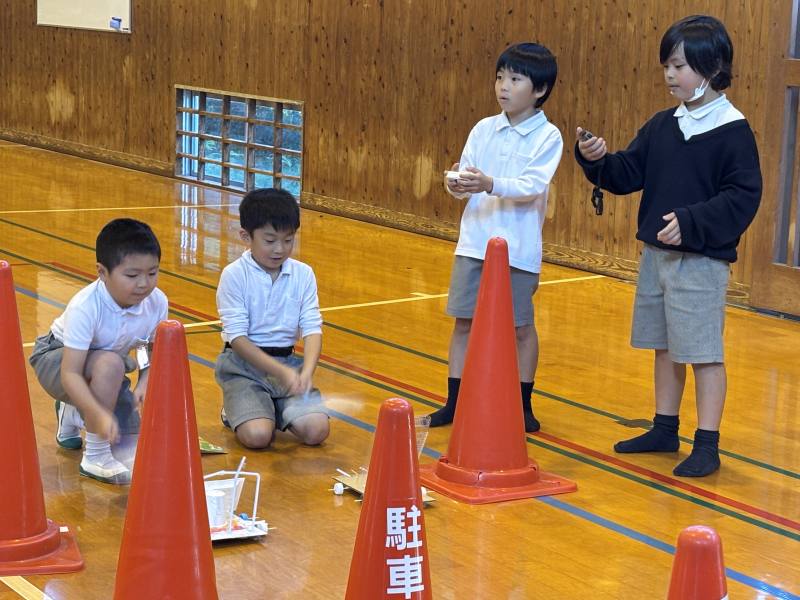 2年生の生活科の学習でおもちゃ作りをしています。そのおもちゃで1年生に楽しんでもらおうと、2年生みんなで『「おもちゃのせかい」を楽しもう』という時間を設定しました。グループに分かれ、「どうすると楽しんでもらえるか」、計画・準備をしてきました。本番当日、体育館は大賑わいでした!「おもしろい!」「もう一回したい!」と1年生のみんなが大喜びしていました。これも2年生のみんなが一生懸命に作ったり考えてくれたからだと思います。2年生の皆さん、素敵な時間をありがとう!