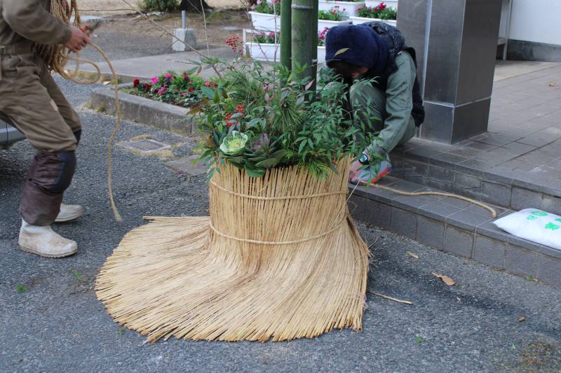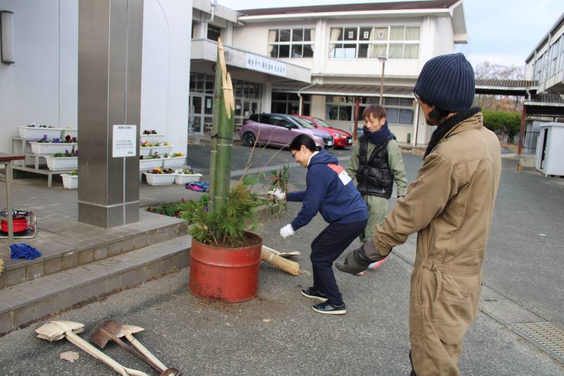 今日はPTA執行部の方と門松を作りました。毎年、菊池北小の玄関前に作っています。松・竹・梅・・・と飾っていきながら、あらためて縁起のよさを感じました。よい年が迎えられます。皆さん、よいお年をお迎えください!