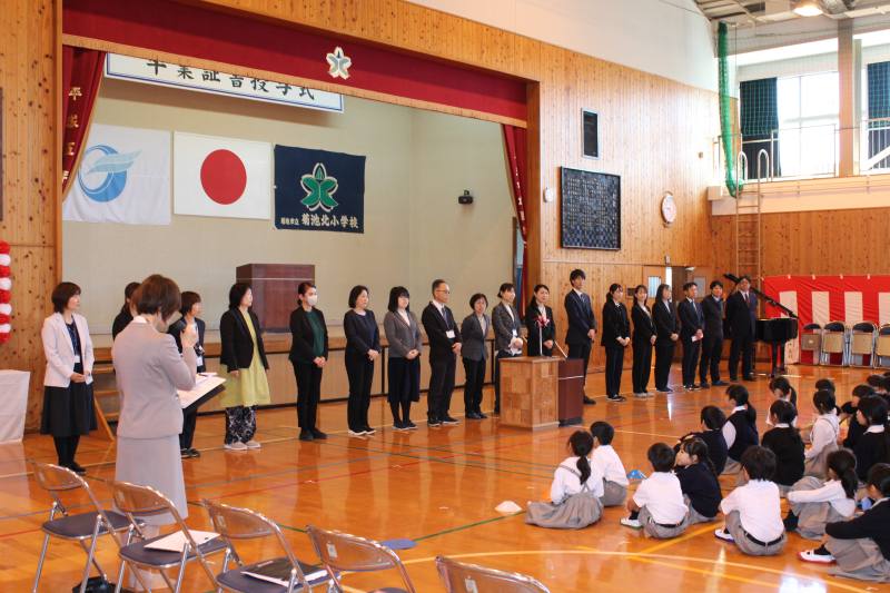 4月8日(水)、新年度がスタートしました!子どもたちの元気な声が学校に戻ってきました。いよいよ令和8年度、新しい1年間が始まります。今年度の菊池北小は学級数9クラス、全校児童173名です。気持ちを新たに、目標もって毎日を過ごしていきましょう!