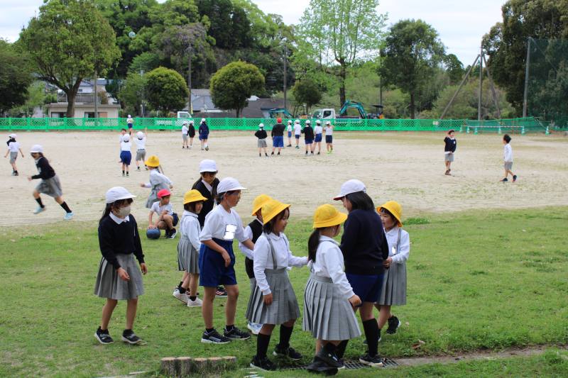 小学校生活はじめての給食を食べた1年生。次は「昼休み」です。1年生ははじめての昼休みです。2~6年生にとっても、1年生と一緒に過ごすはじめての昼休みです。上級生と1年生が仲良く遊んでいするがたが実によかったです!また、明日も楽しく昼休みを過ごそうね!