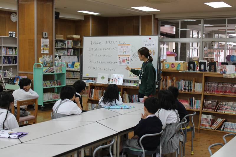 新年度になり、改めて図書室の使い方の説明を受けてから、本の貸し出しができるようになります。さっそく1年生も図書司書の先生から話を聞きました。みんなで図書室の使い方を守り、たくさんの本にふれていきましょう。