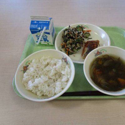 麦ごはん、厚揚げのみそ煮、切り干し大根のごまサラダ