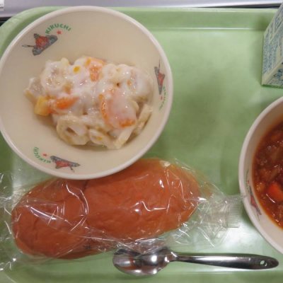 チリコンカン、フルーツヨーグルト、ミルクパン