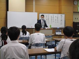 午後からマナー講座を実施しました。多くの生徒がコミュニケーションに対して苦手意識を持っています。自分の気持ちをうまく伝えられない、話すのが苦手、コミュニケーションが難しい。そう感じている生徒に自信をもって他人と意思疎通が図れるようにすることで、将来の職業選択の一助になればと、2年生の職場体験がコロナ禍の中で実施できなかったため、地域学校協働活動推進員の方、2年部で計画実施されました。1年、3年もオンラインにて同時に視聴しました。