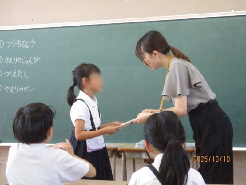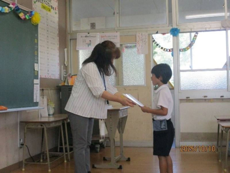 1年生は、初めての通知表を担任から受け取りました。