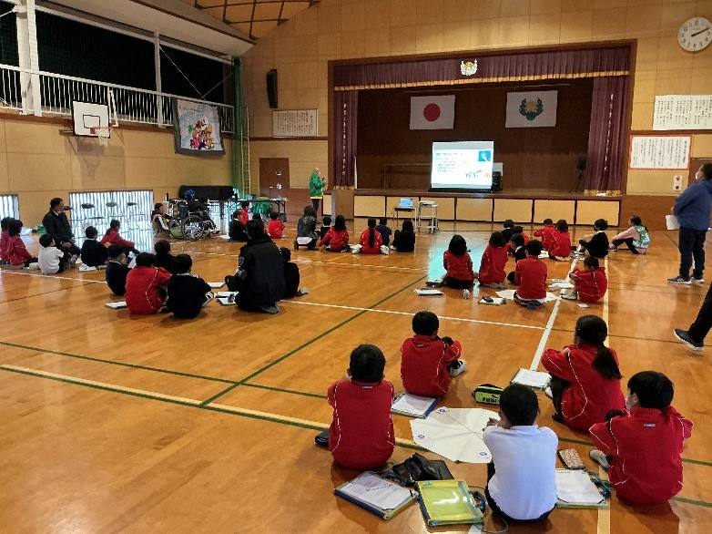 「もし、地震が起きたら家族同然のペットを避難所に連れていきますか?」「家に一人でいる時に地震が起きました。近所の人が『一緒に避難しよう』と言っています。あなたは一緒に避難しますか?」と問題を投げかけられ、子どもたちは真剣に自分の考えを話していました。