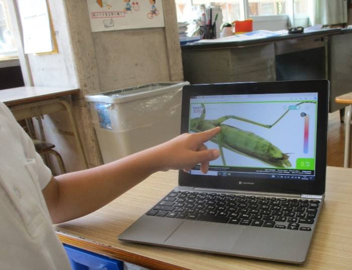 ネット上にある「ものすごい図鑑」を見ながら、子どもたちは「すごい!」「めっちゃ見える!」といろんな昆虫を次から次へとみていました!